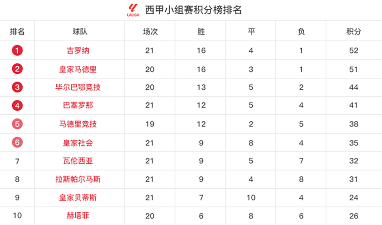 西甲第38轮,吉罗纳主场7-0大胜格拉纳达。